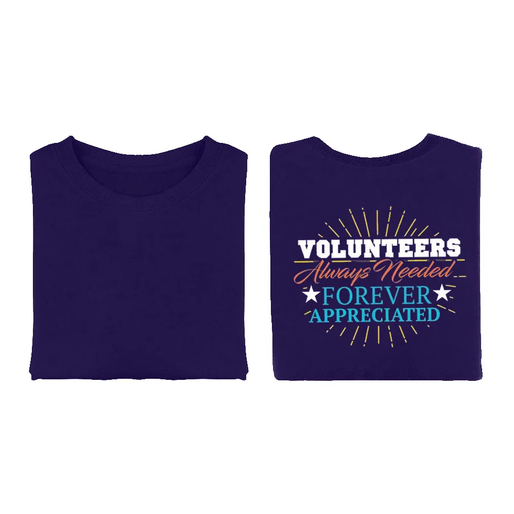 Available with our exclusive Volunteers: Always Needed, Forever Appreciated design on back AND your screenprinted personalization on front upper left chest