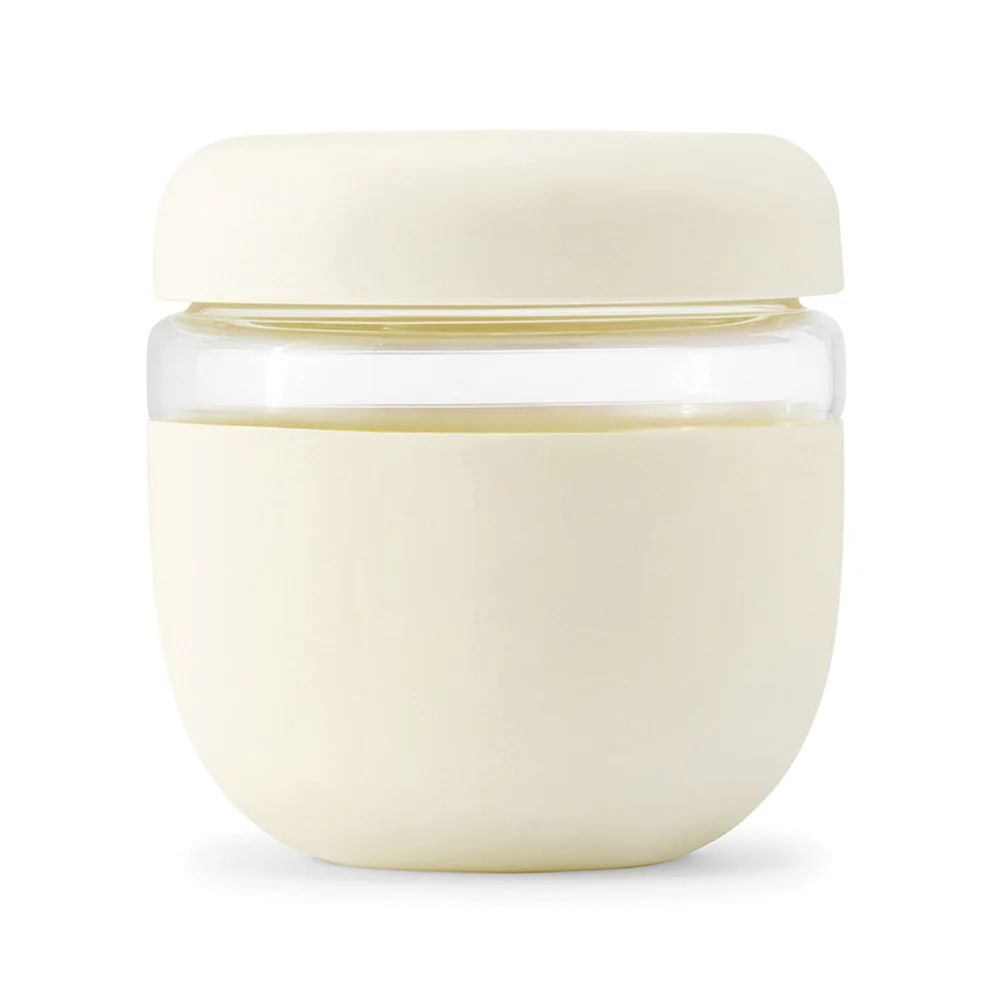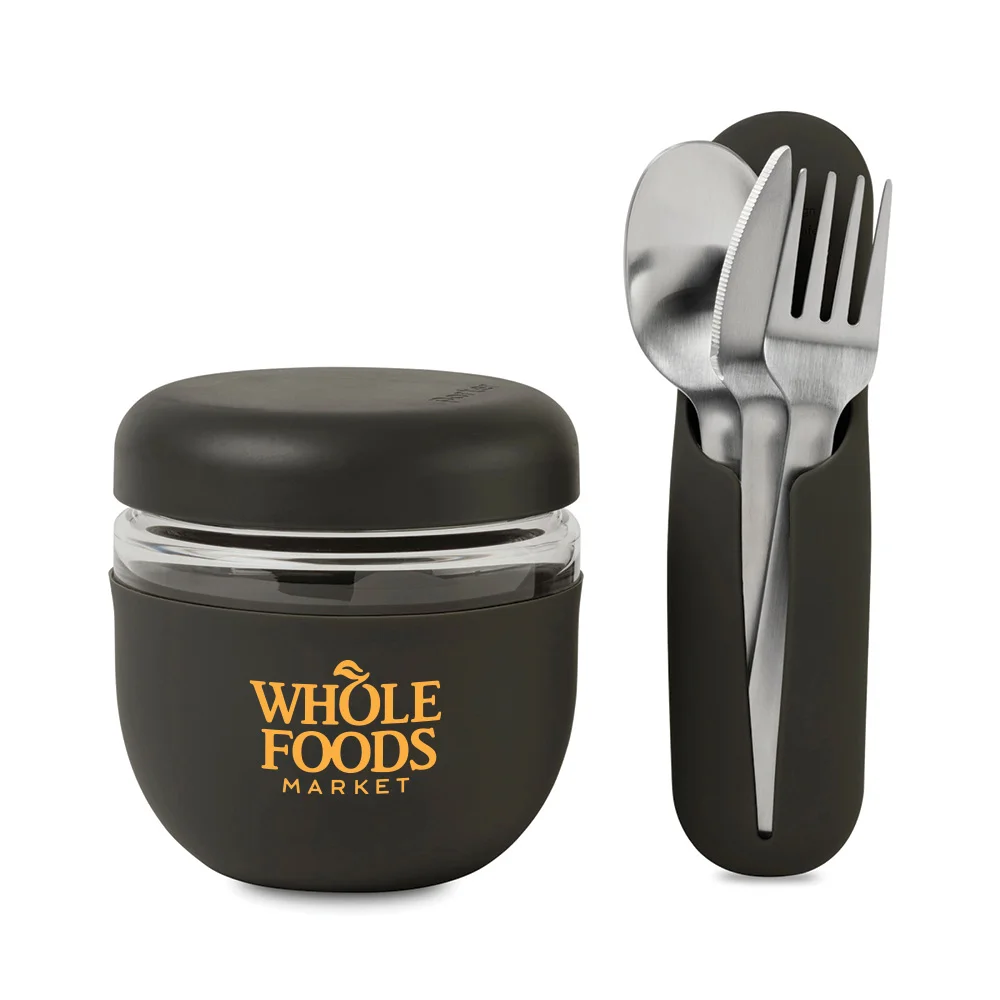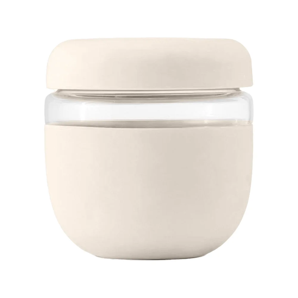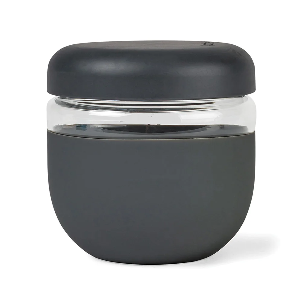 Bowl: Holds 24 oz.; A plentiful serving size for yogurt and fruit, soup, pasta, and much more; Leak-proof screw-on lid; Made of borosilicate glass and wrapped in protective matte silicone