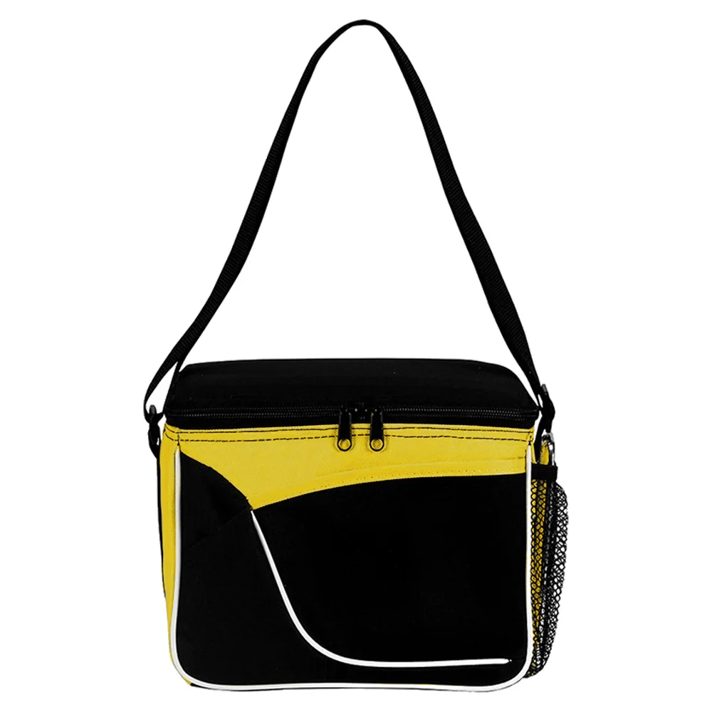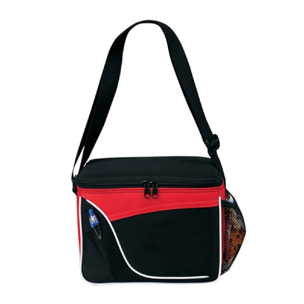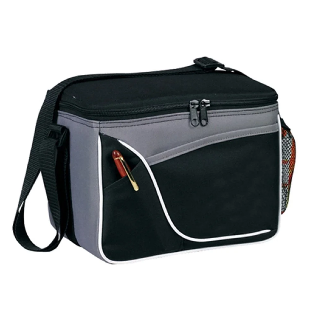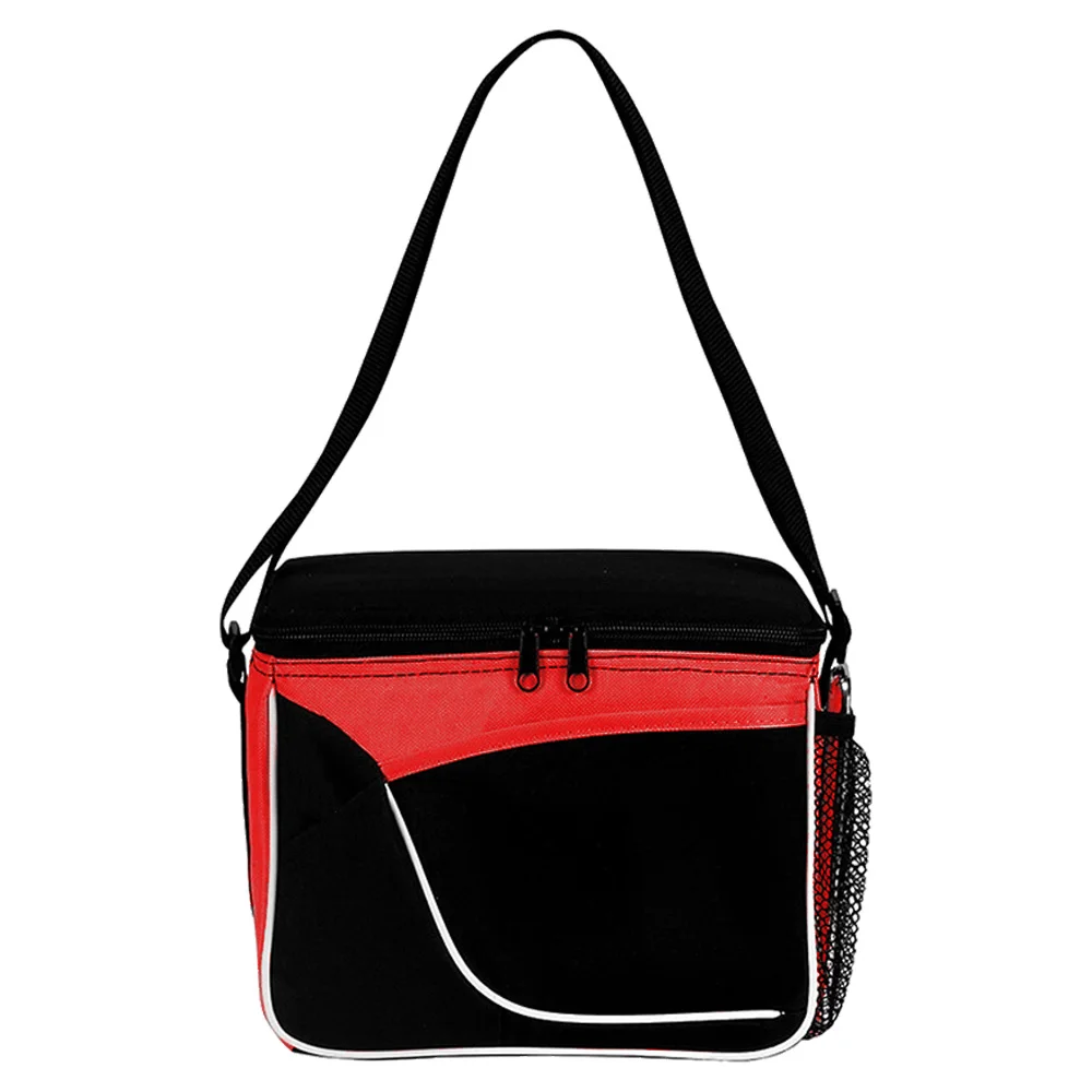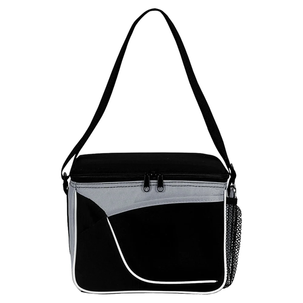 Enjoy an effective insulated design with a reinforced bottom, a main compartment with a heat sealed liner, an open front pocket and an adjustable shoulder length carrying handle that makes carrying and transport easy