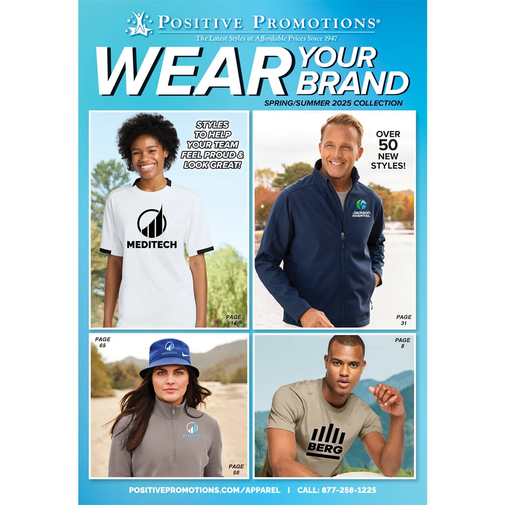 Promote your business or organization and appreciate your staff this summer with personalized apparel from Positive Promotions! Shop our wide selection of custom wearables that elevate your brand and outfit your team, including your remote staff, customers, and supporters. Wear Your Brand is packed with hot styles to keep cool all summer long like professional polos and custom T-shirts. We offer retail-branded jackets, vests, and other premium wearables that ensure quality and reliability for those early mornings, late nights, and any weather conditions. Personalized apparel is the ultimate gift that will be appreciated by all. Plus, check out our custom bags and headwear!