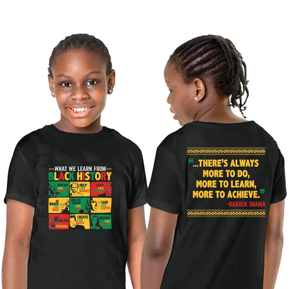 What We Learn From Black History Youth Short-Sleeved T-Shirt - Silkscreened Personalization Available
