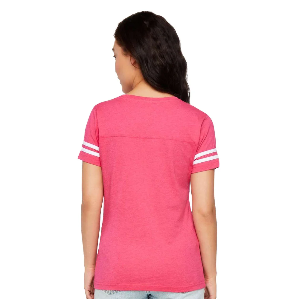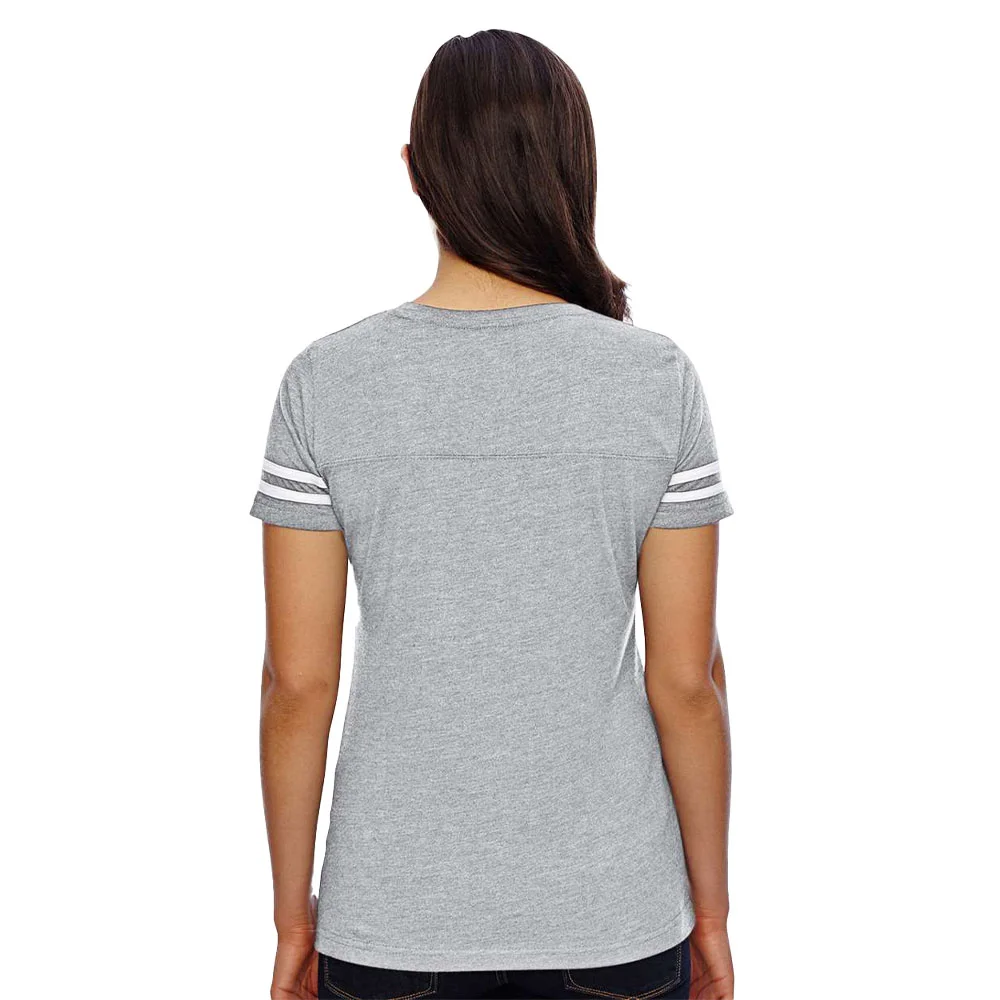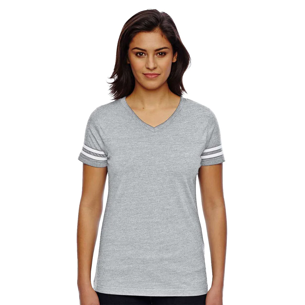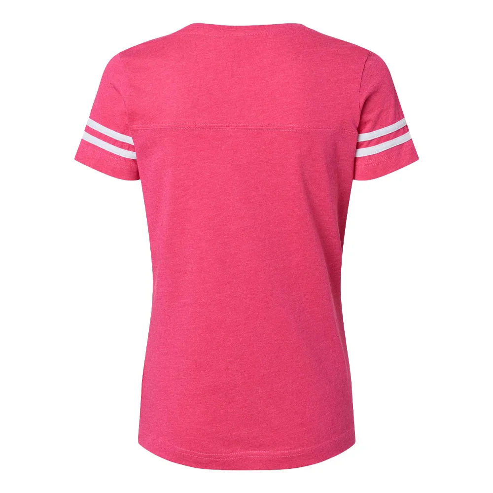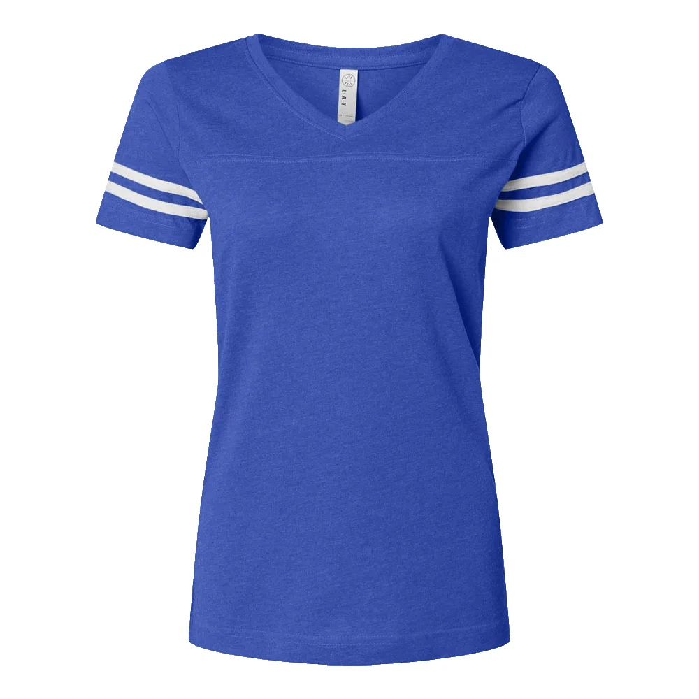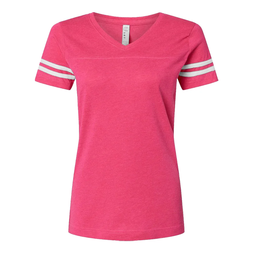 Women's Football V-Neck Fine Stripe Varsity Jersey Tee - Silkscreened Personalization Available