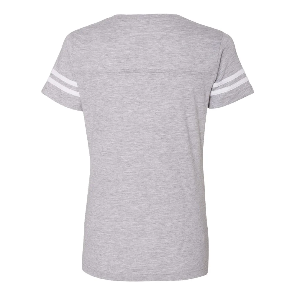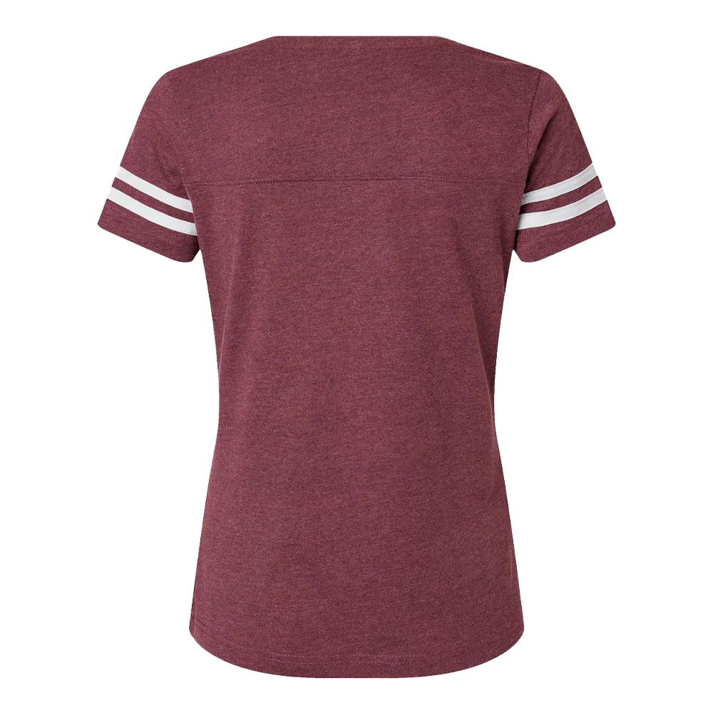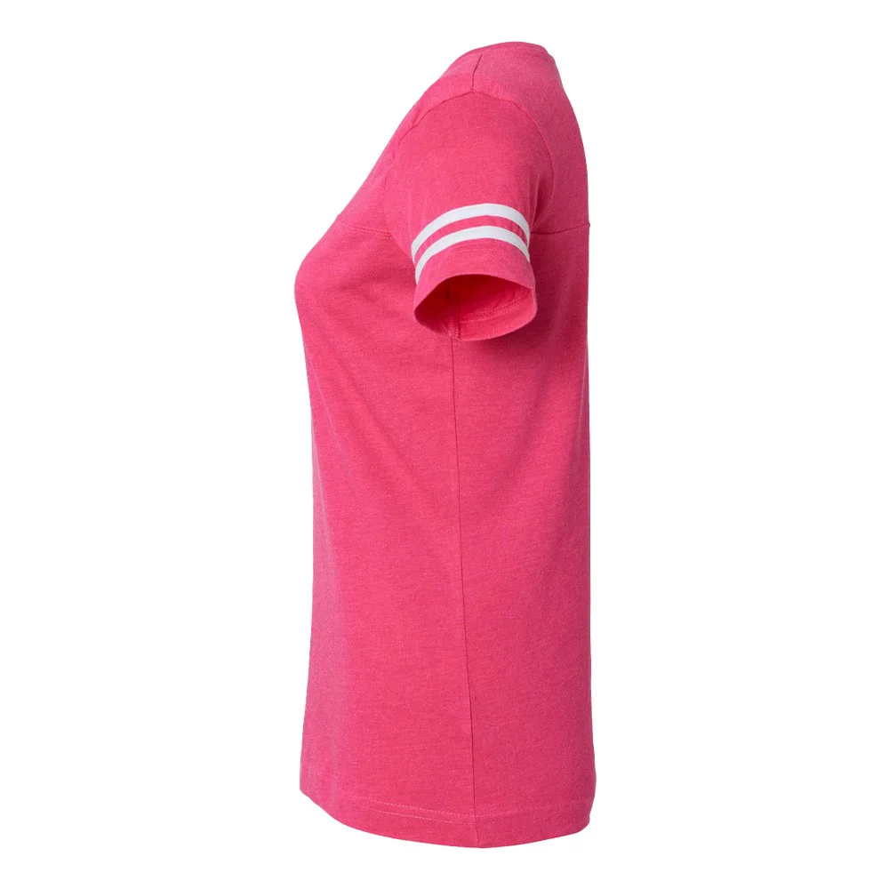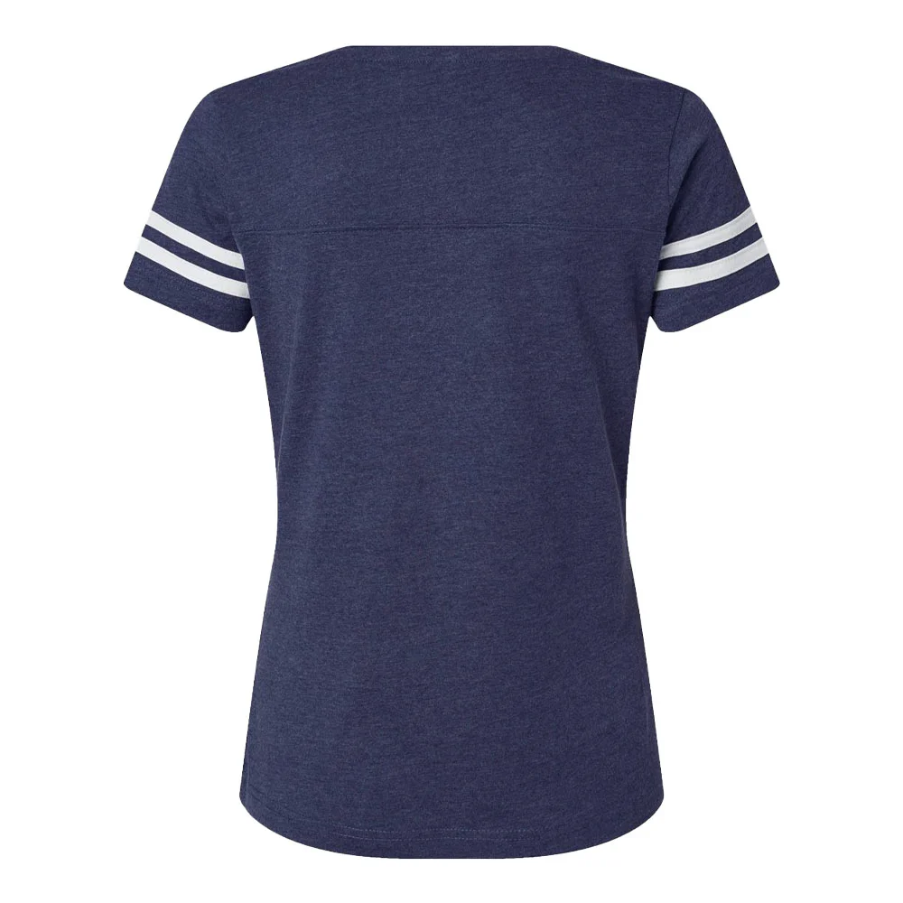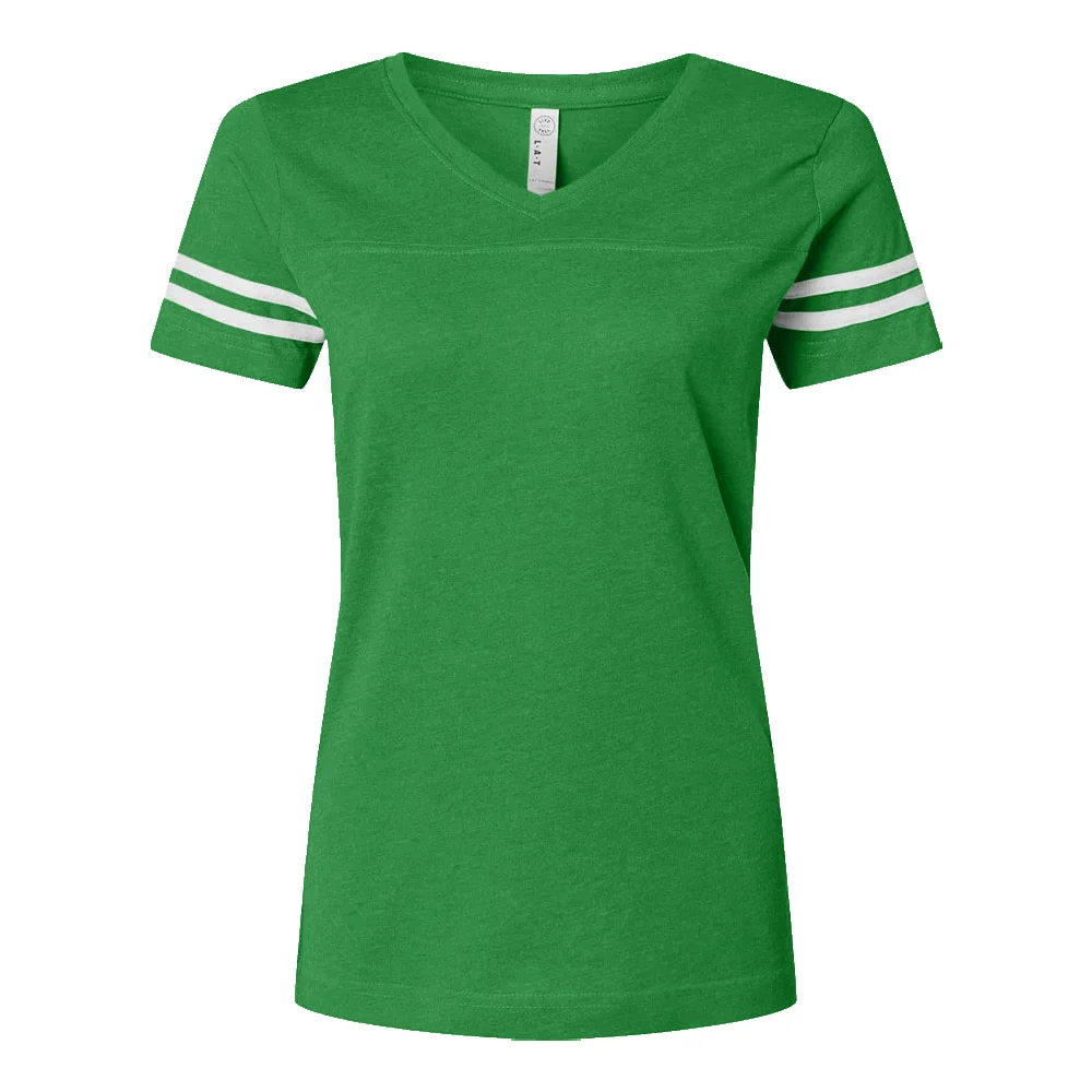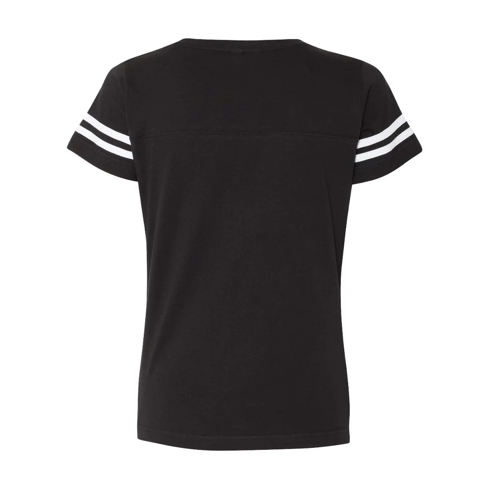 Women's Football V-Neck Fine Stripe Varsity Jersey Tee - Silkscreened Personalization Available