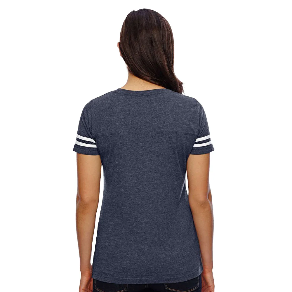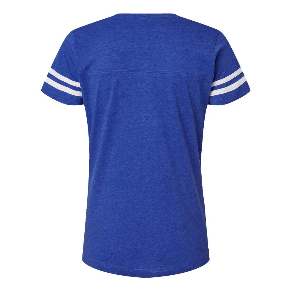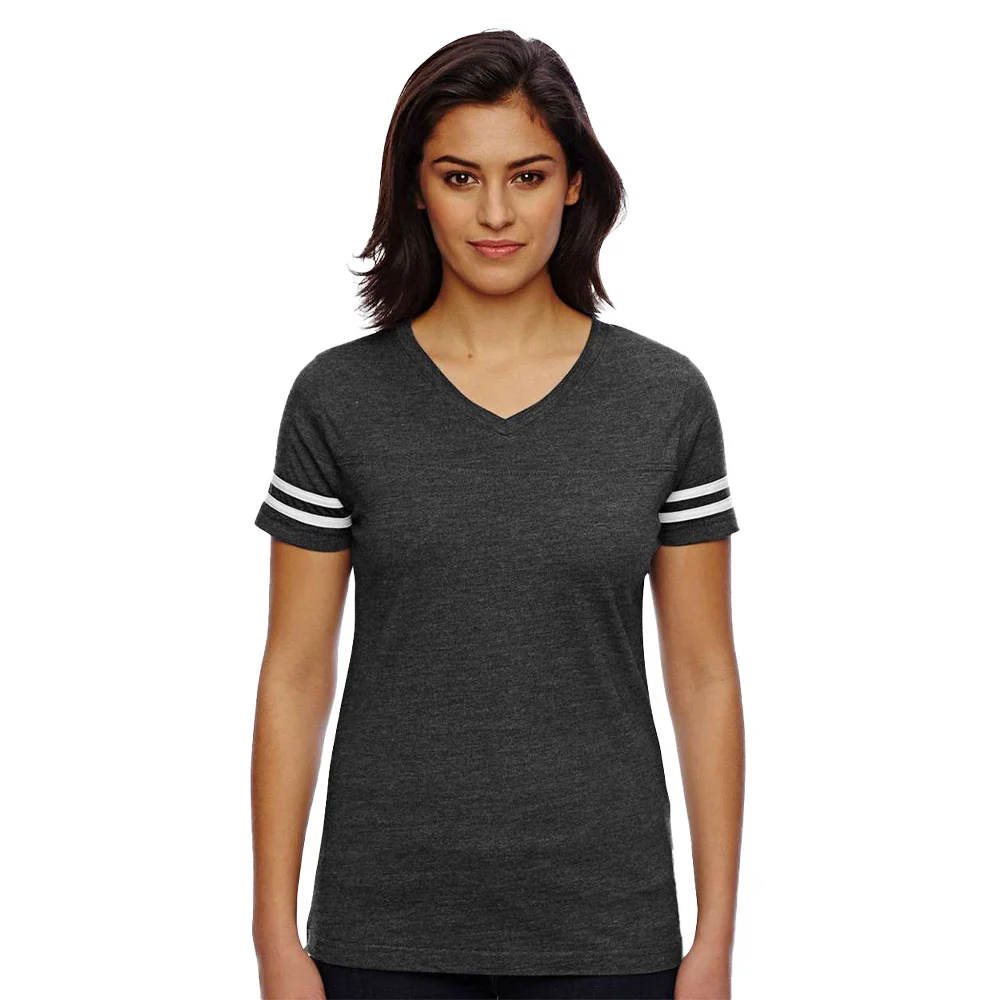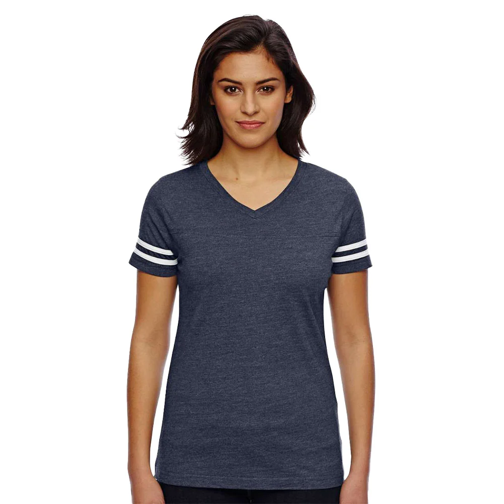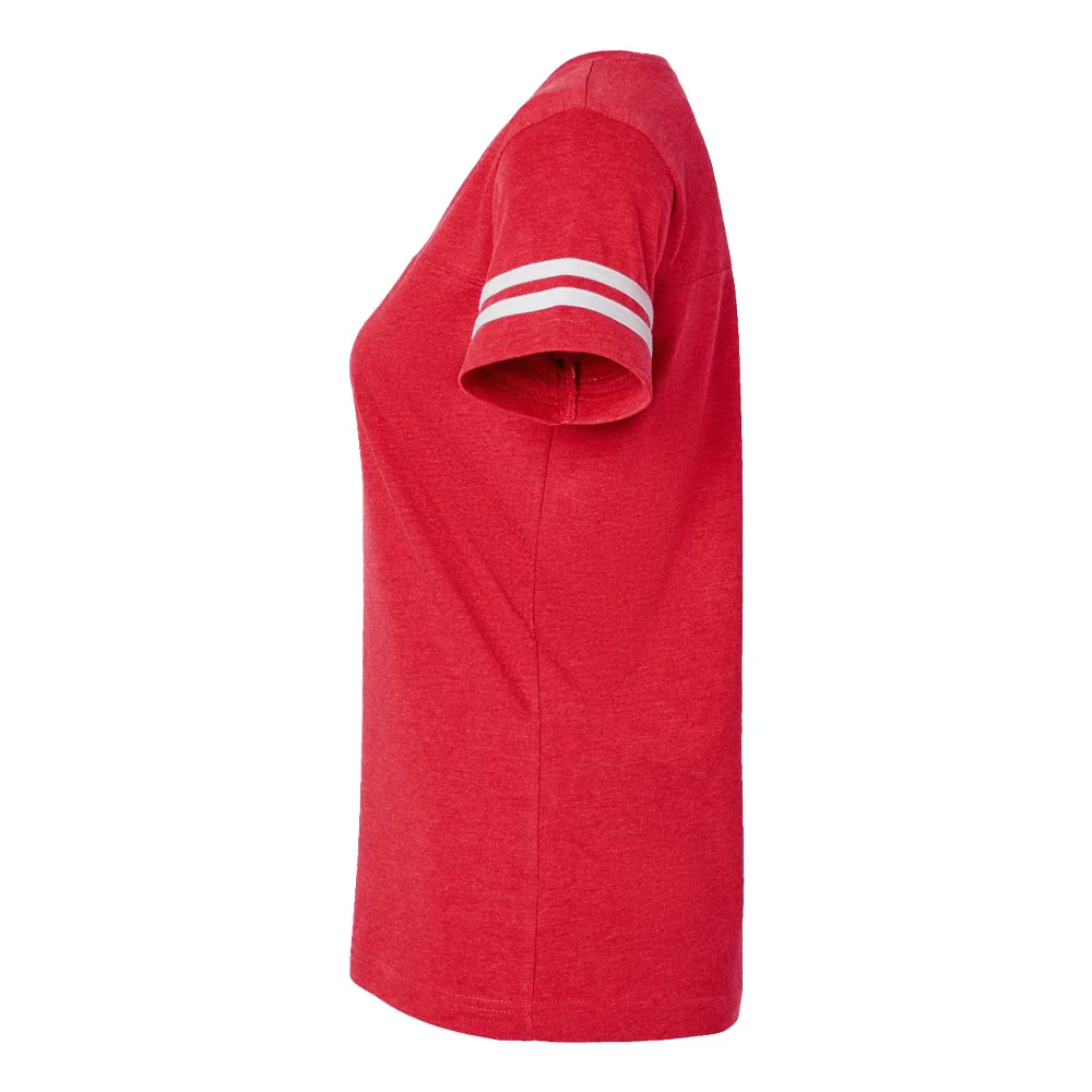 Women's Football V-Neck Fine Stripe Varsity Jersey Tee - Silkscreened Personalization Available