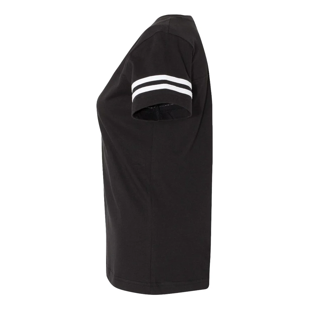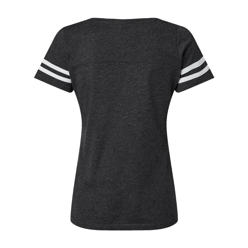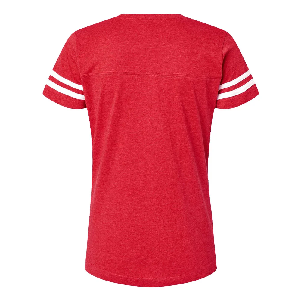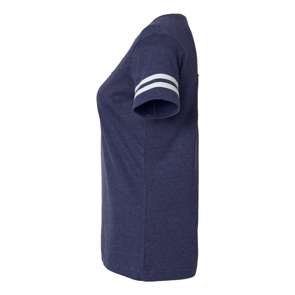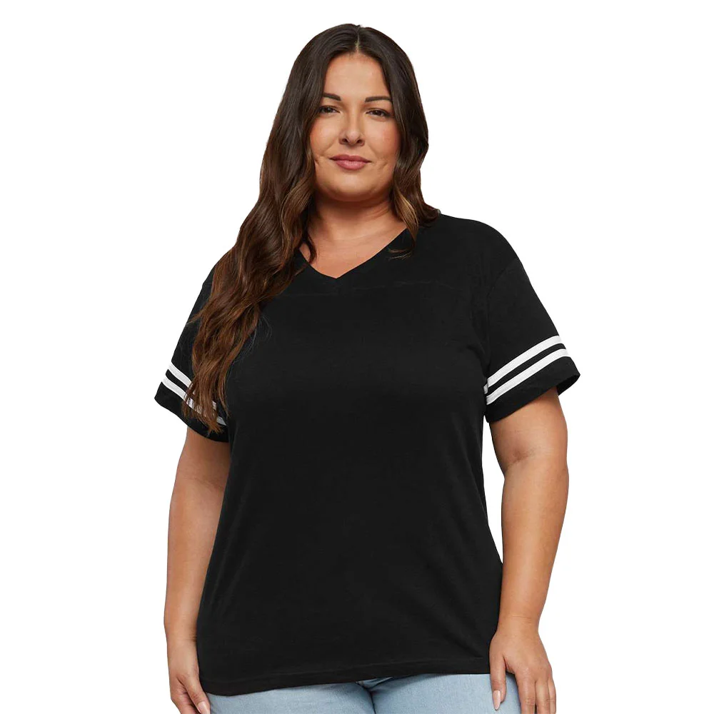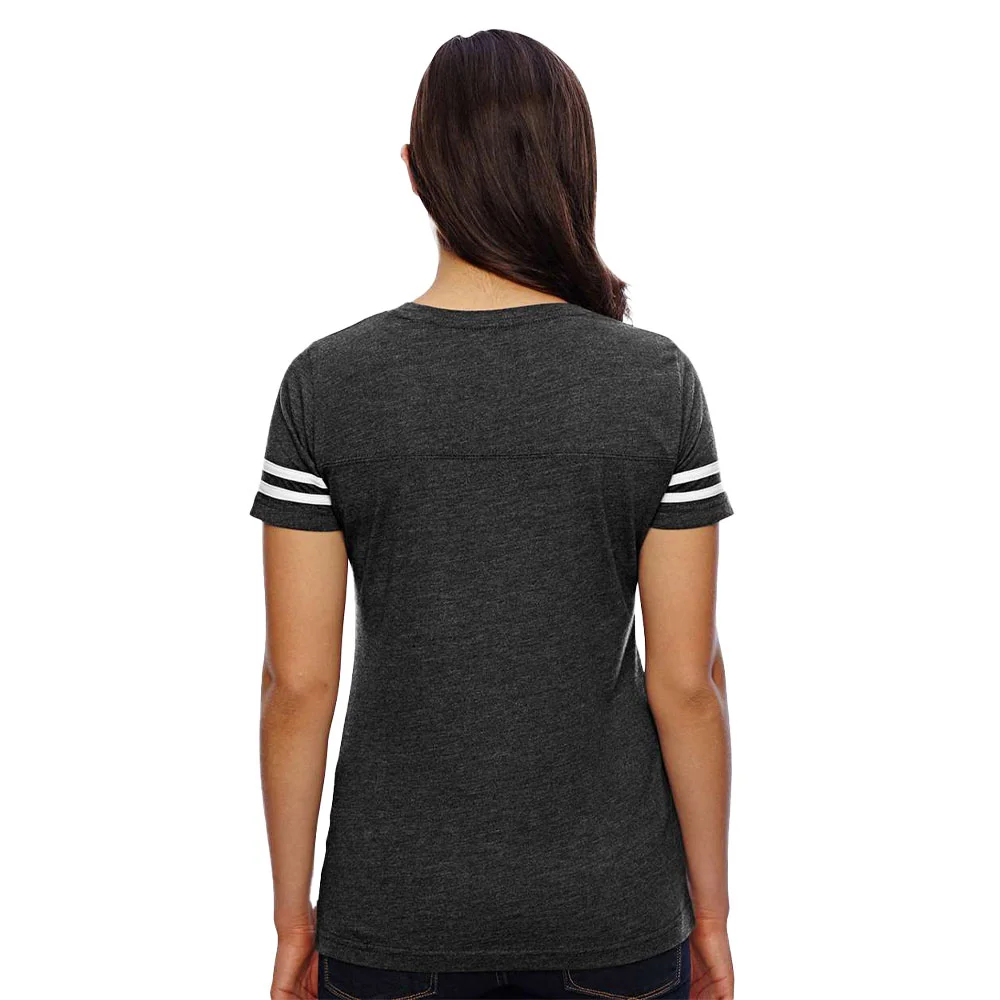 Women's Football V-Neck Fine Stripe Varsity Jersey Tee - Silkscreened Personalization Available