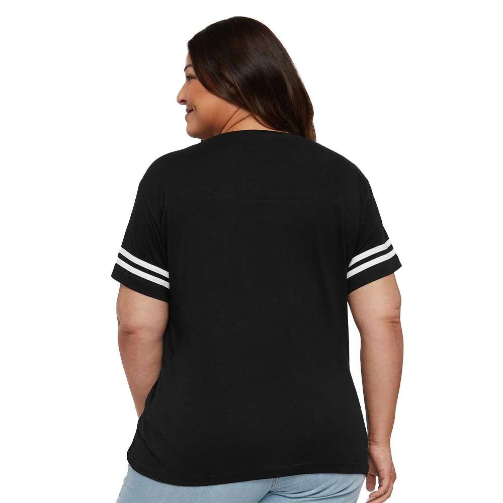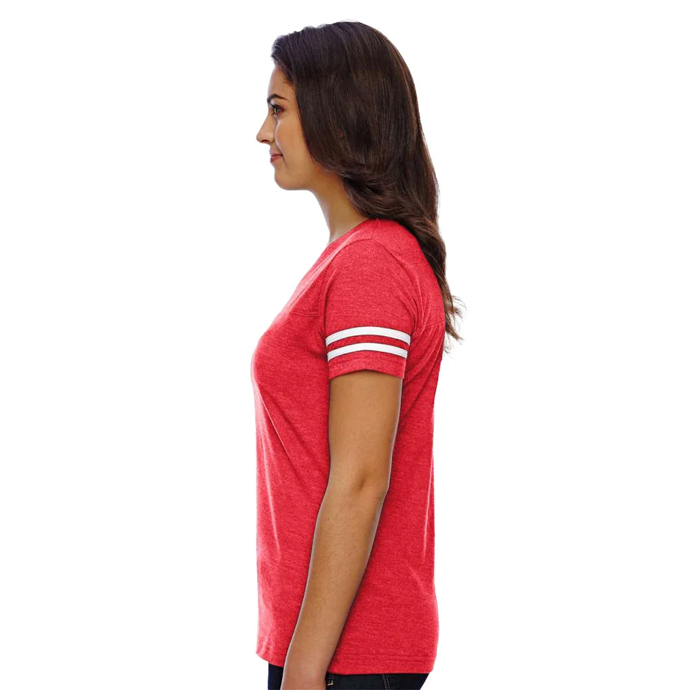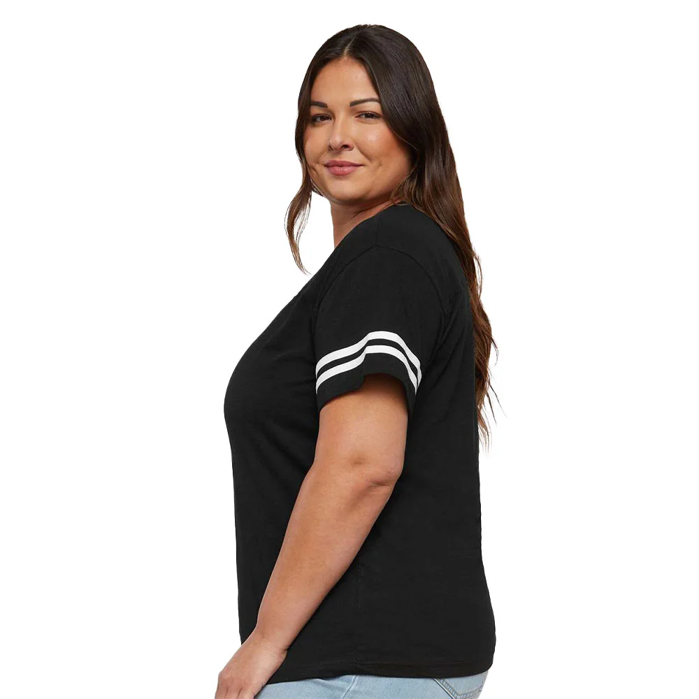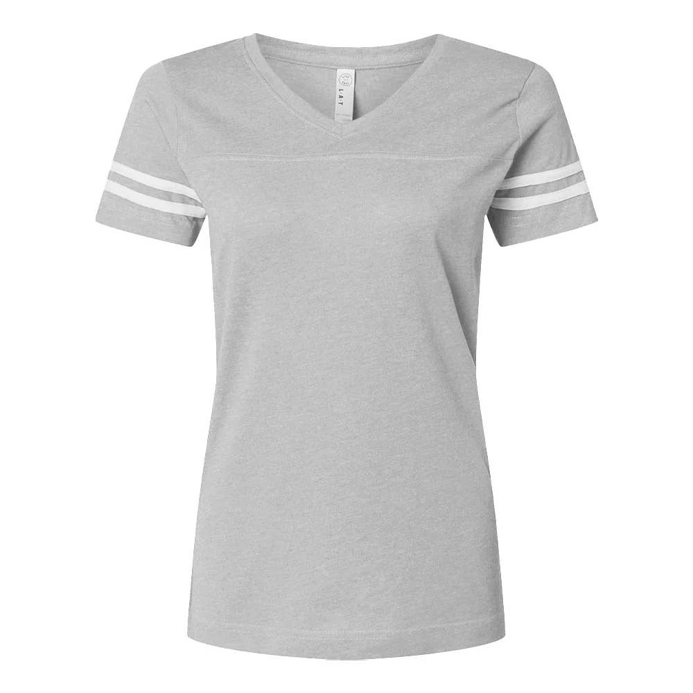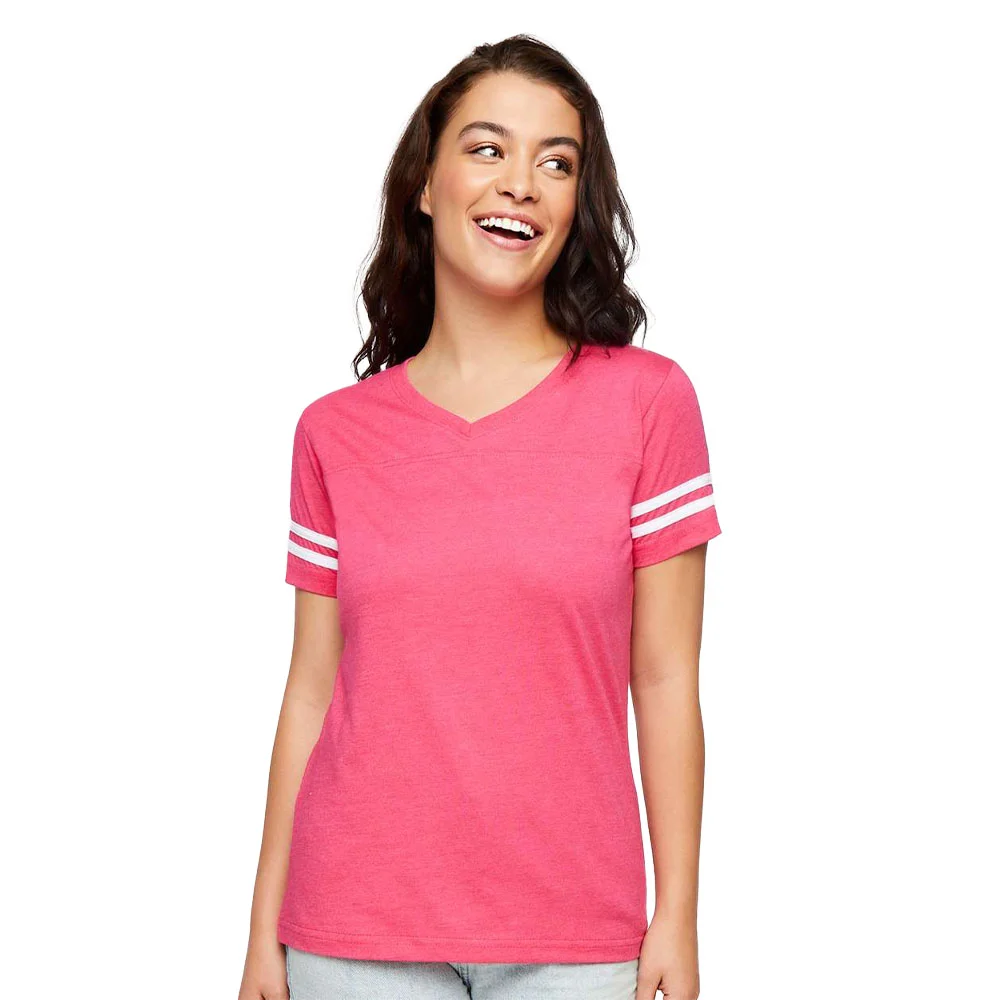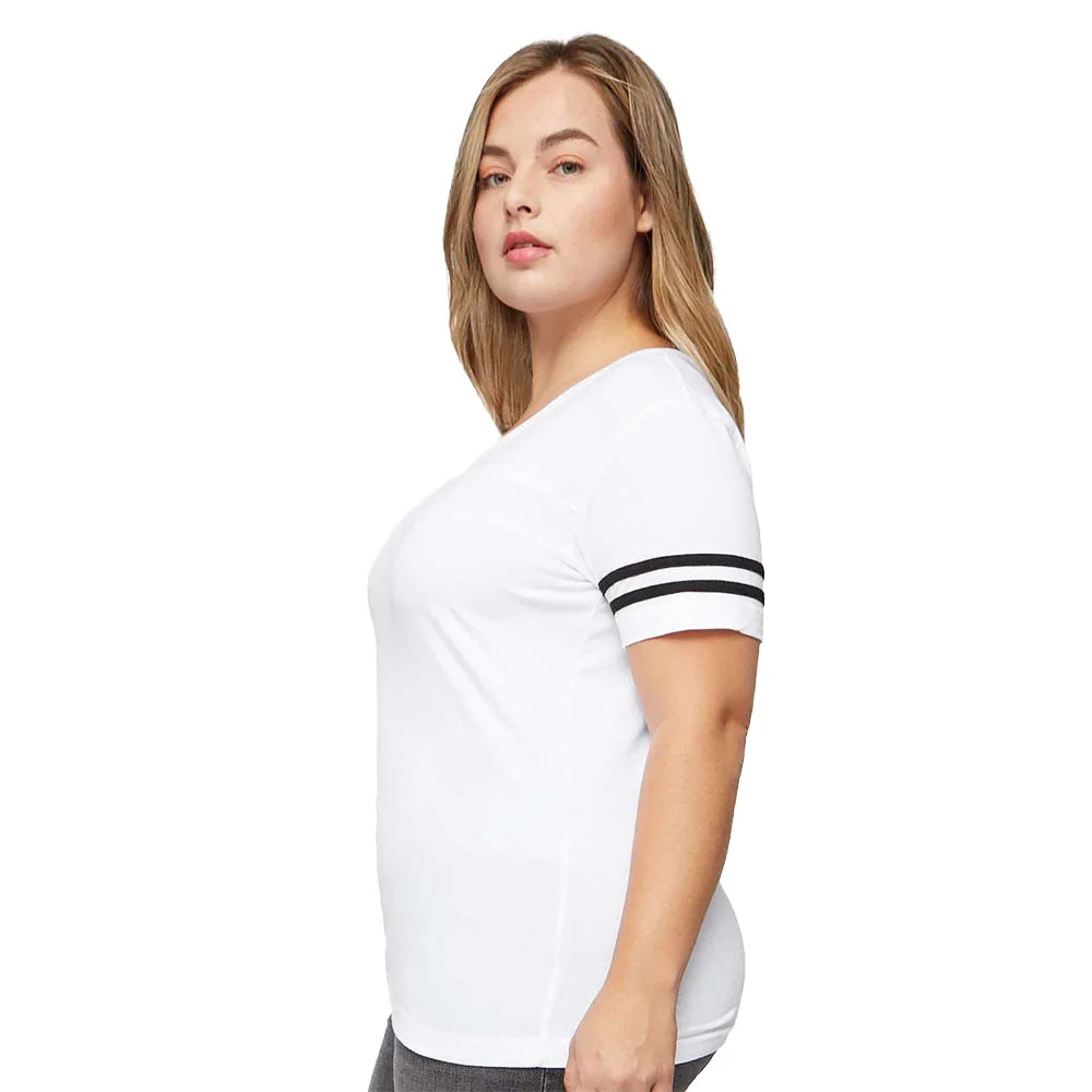 Women's Football V-Neck Fine Stripe Varsity Jersey Tee - Silkscreened Personalization Available