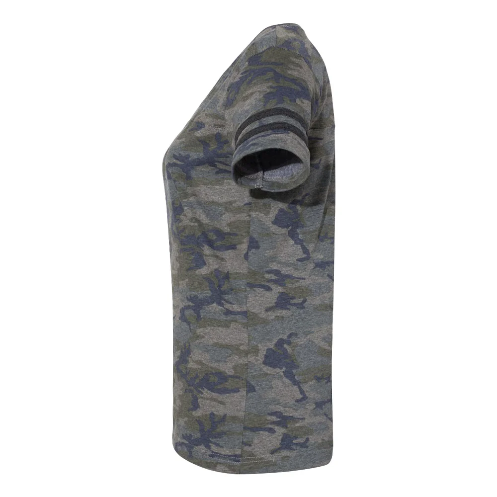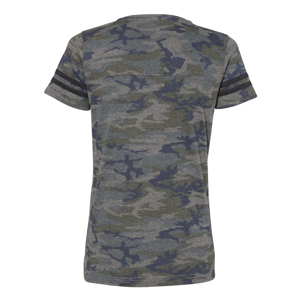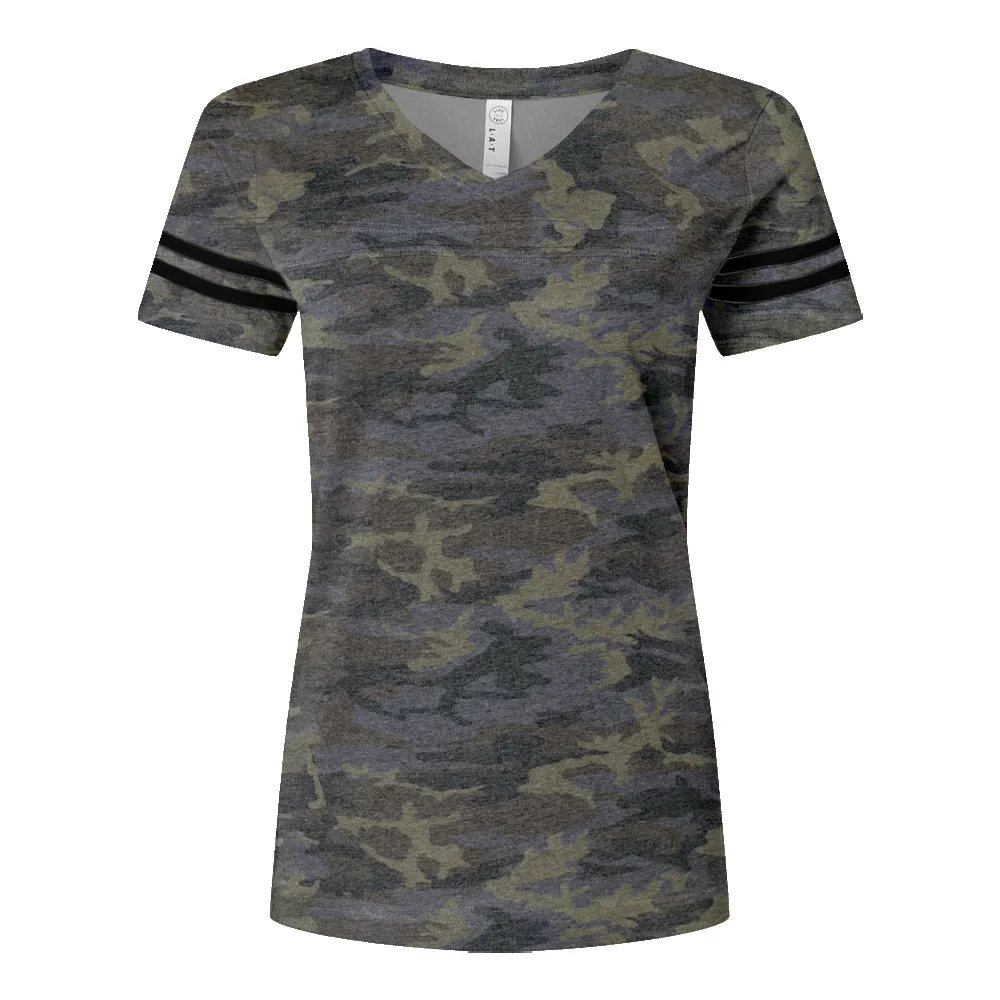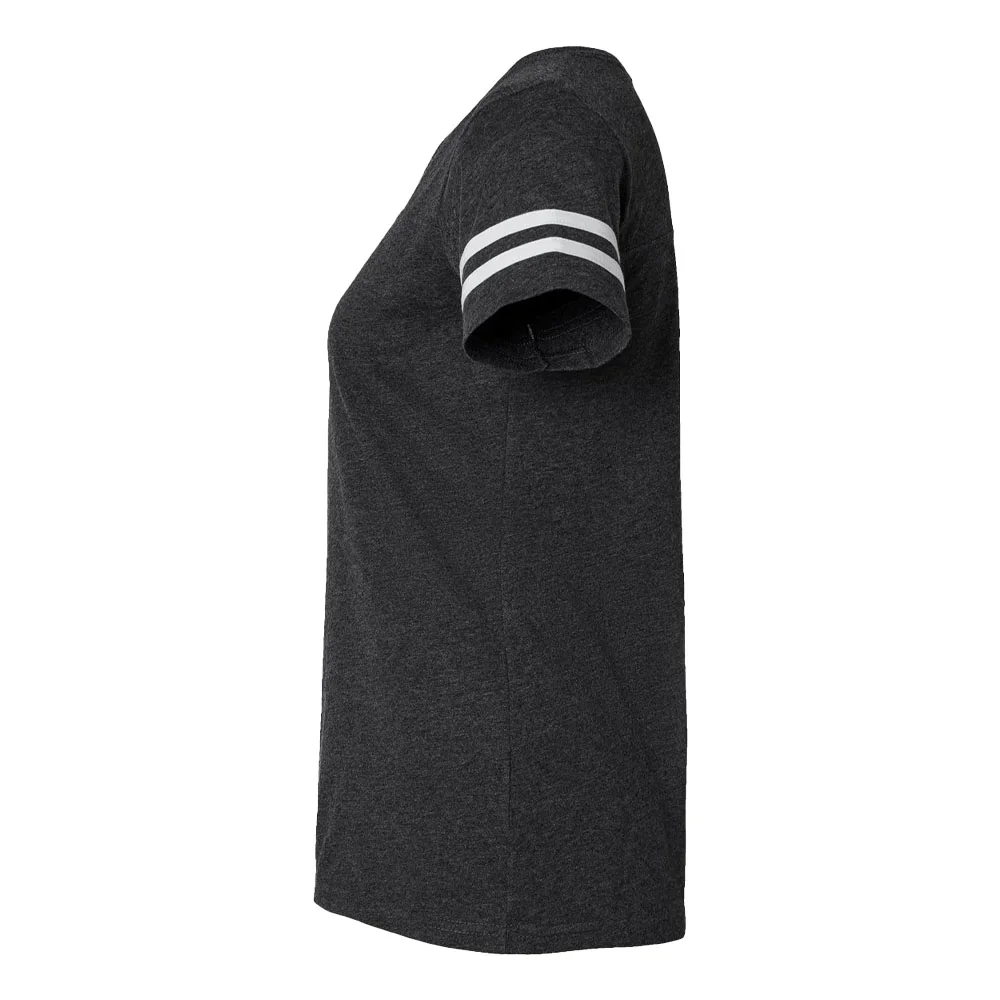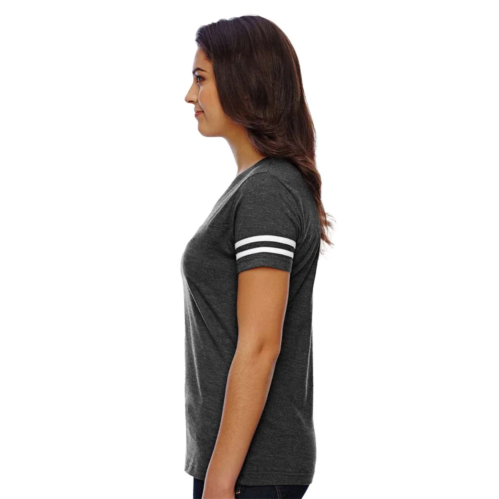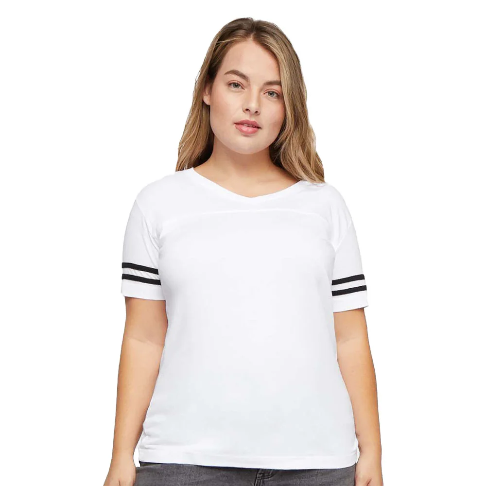 Women's Football V-Neck Fine Stripe Varsity Jersey Tee - Silkscreened Personalization Available