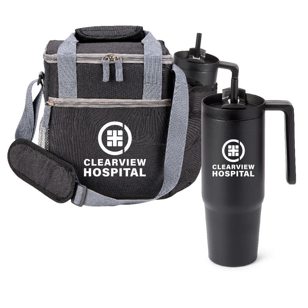 Lunch/Cooler Bag: 10 1/2" X 10" X 6"; Tumbler: 30-Oz.