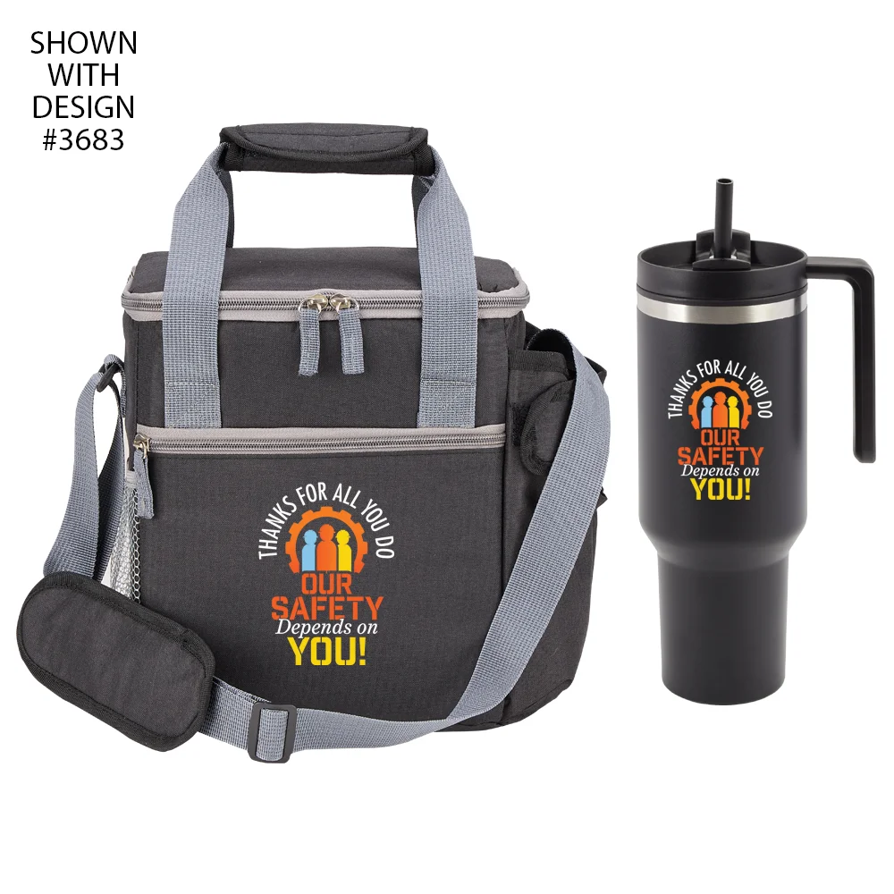 Workplace Safety Black Riverside Deluxe Cooler With Tumbler Pocket & Quencher Tumbler 40-oz. - Personalized