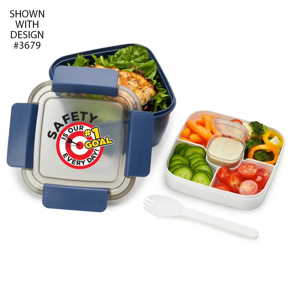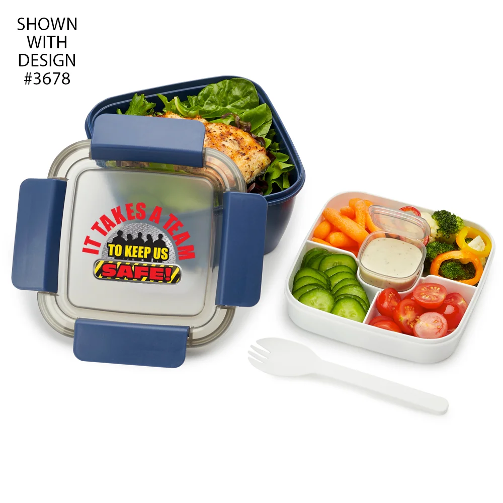 Workplace Safety Blue Locking Food Container With Compartments 54 oz. - Personalization Available