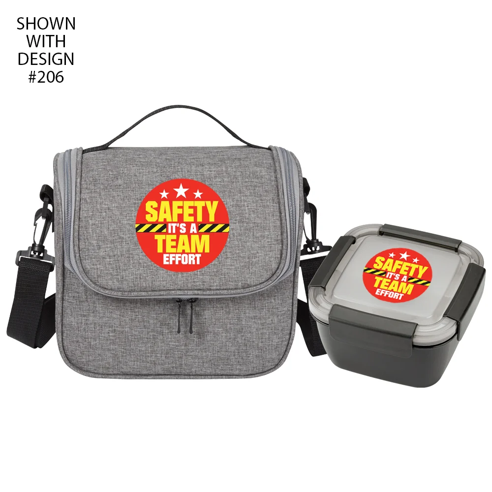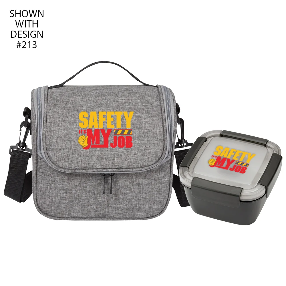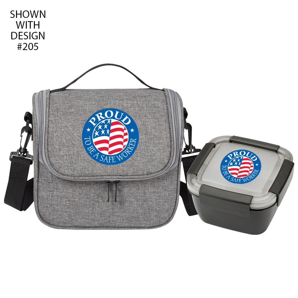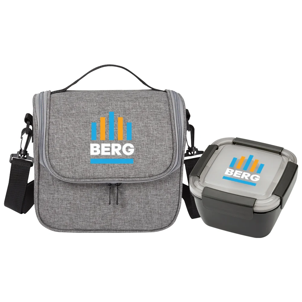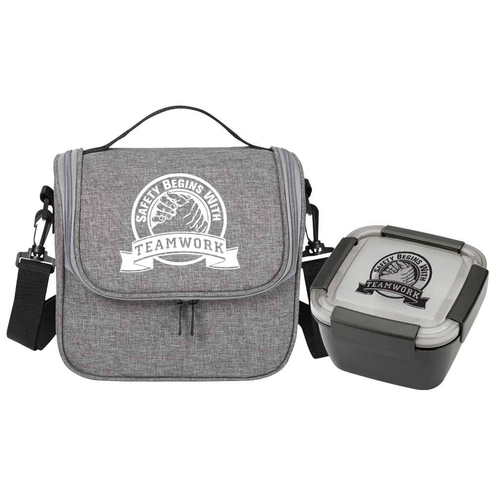 2-piece gift set includes: Portland Lunch/Cooler Bag & Locking Food Container With Compartments 54 oz.