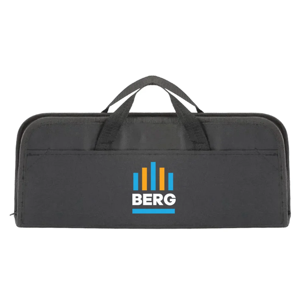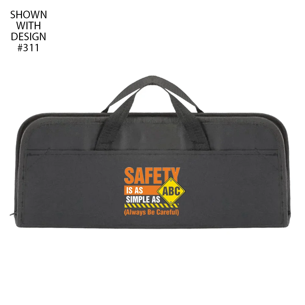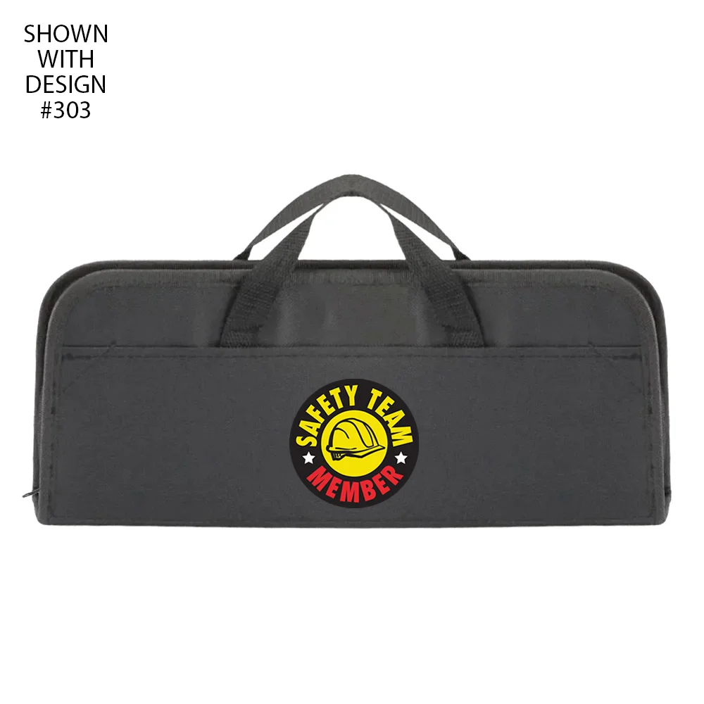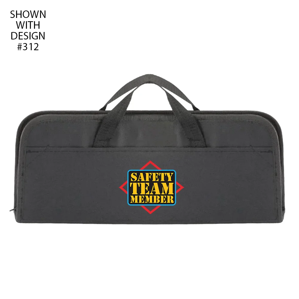 Durable 600-denier polyester carry case with zip closure, multiple interior straps to hold each tool in place, exterior storage pocket, and 12" webbing handles