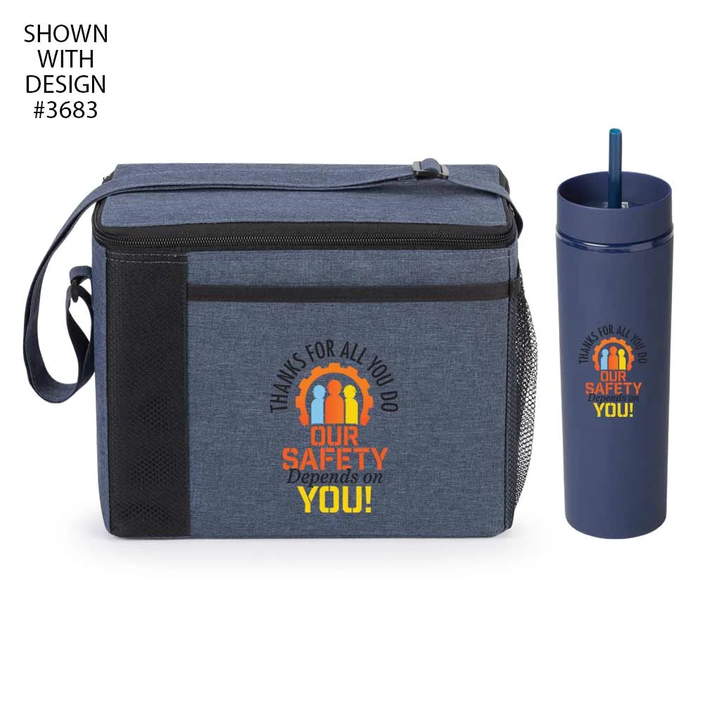 Cooler Lunch Bag: 11" X 9" X 6"; Tumbler: 16-Oz.