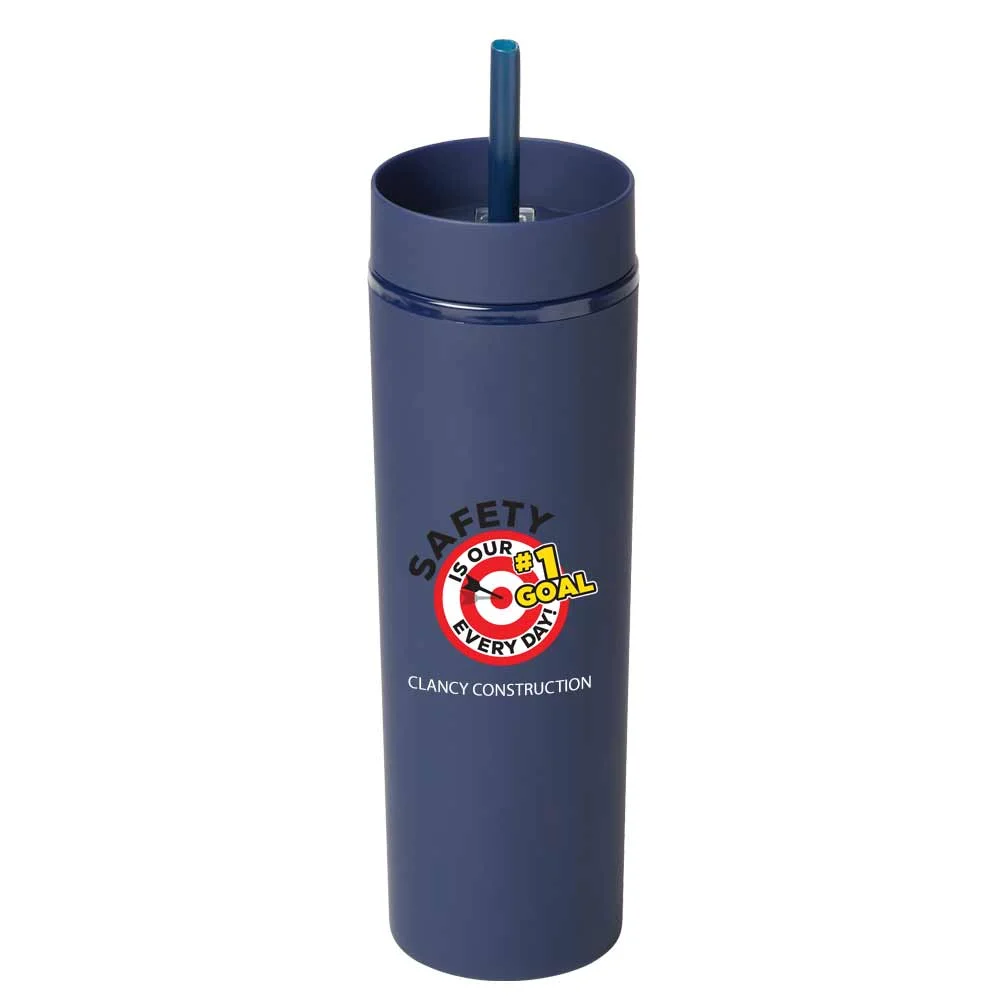 Personalized 16-Oz. Tumbler: Sipping simplified: one lid, two ways to enjoy hot or cold beverages on the go; Double-walled acrylic body with easy-grip, satin, rubberized finish; Screw-on lid with two ways to sip: slide lid opening for hot drinks & straw port opening for cold drinks; Reusable soft straw included; Slips through straw port; Stopper on end prevents spills and keeps it in place; Eco friendly; Reusable; BPA free; Gift box included; Note: Hand wash recommended