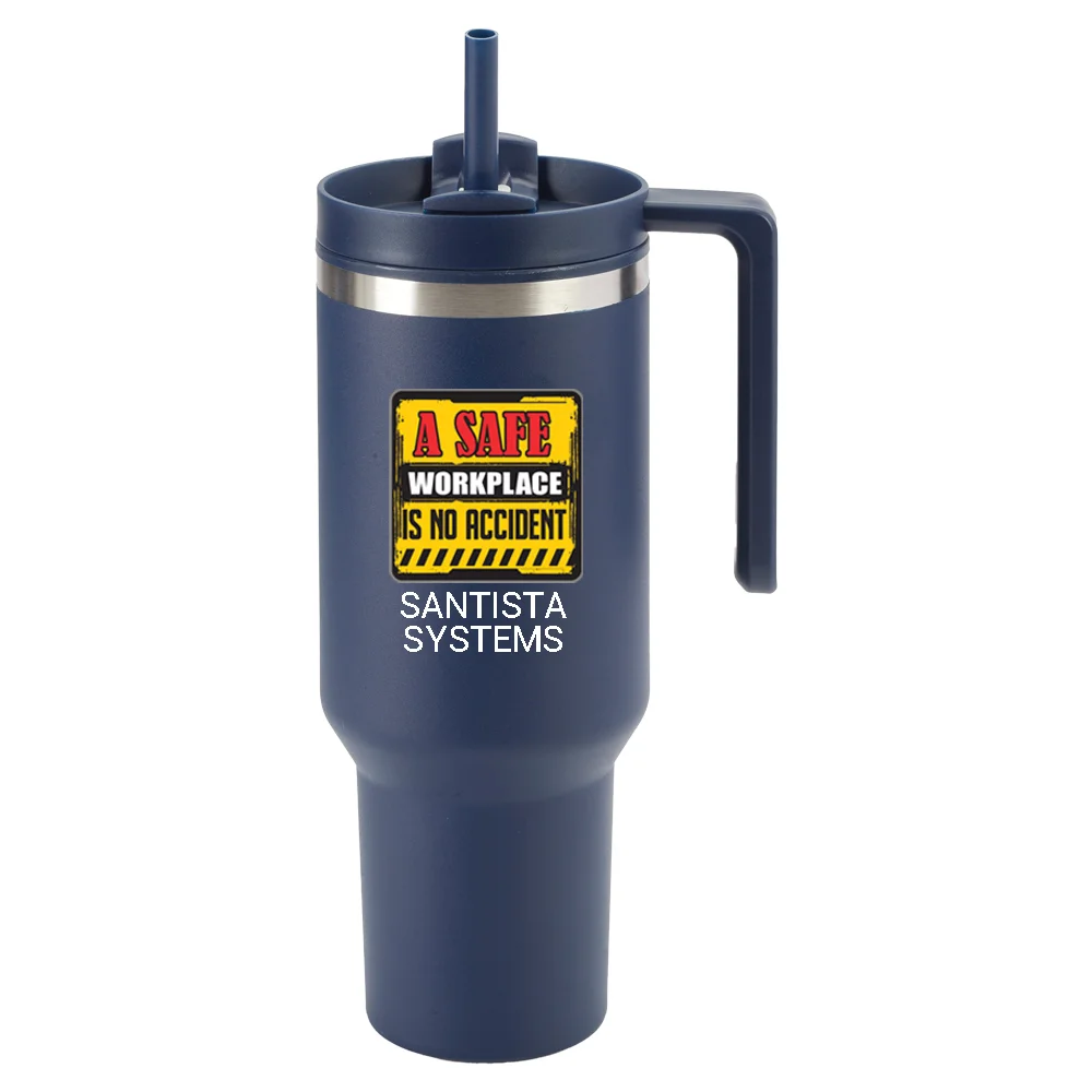 Tumbler is double-wall insulated; stainless steel outer and plastic liner maintain optimal hot or cold temperature; durable, no-sweat powder-coated finish; splash-proof threaded lid; drink with or without removable straw