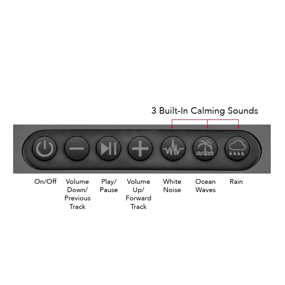 • 3 soothing sounds: White Noise, Ocean Waves, Rain