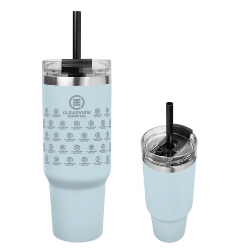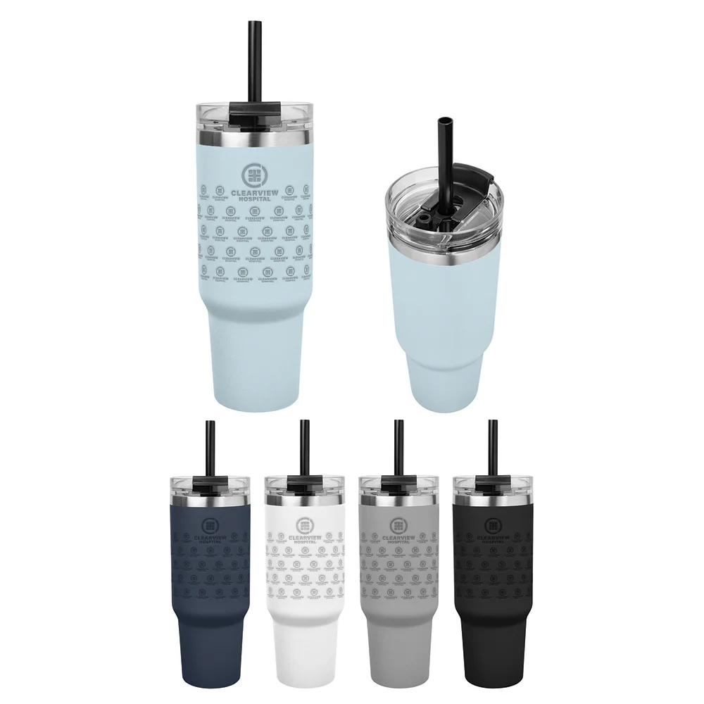Flip Straw Stainless-Steel/Plastic-Lined Tumbler 30 oz. With Top Carry Handle - One-Color Personalization Available