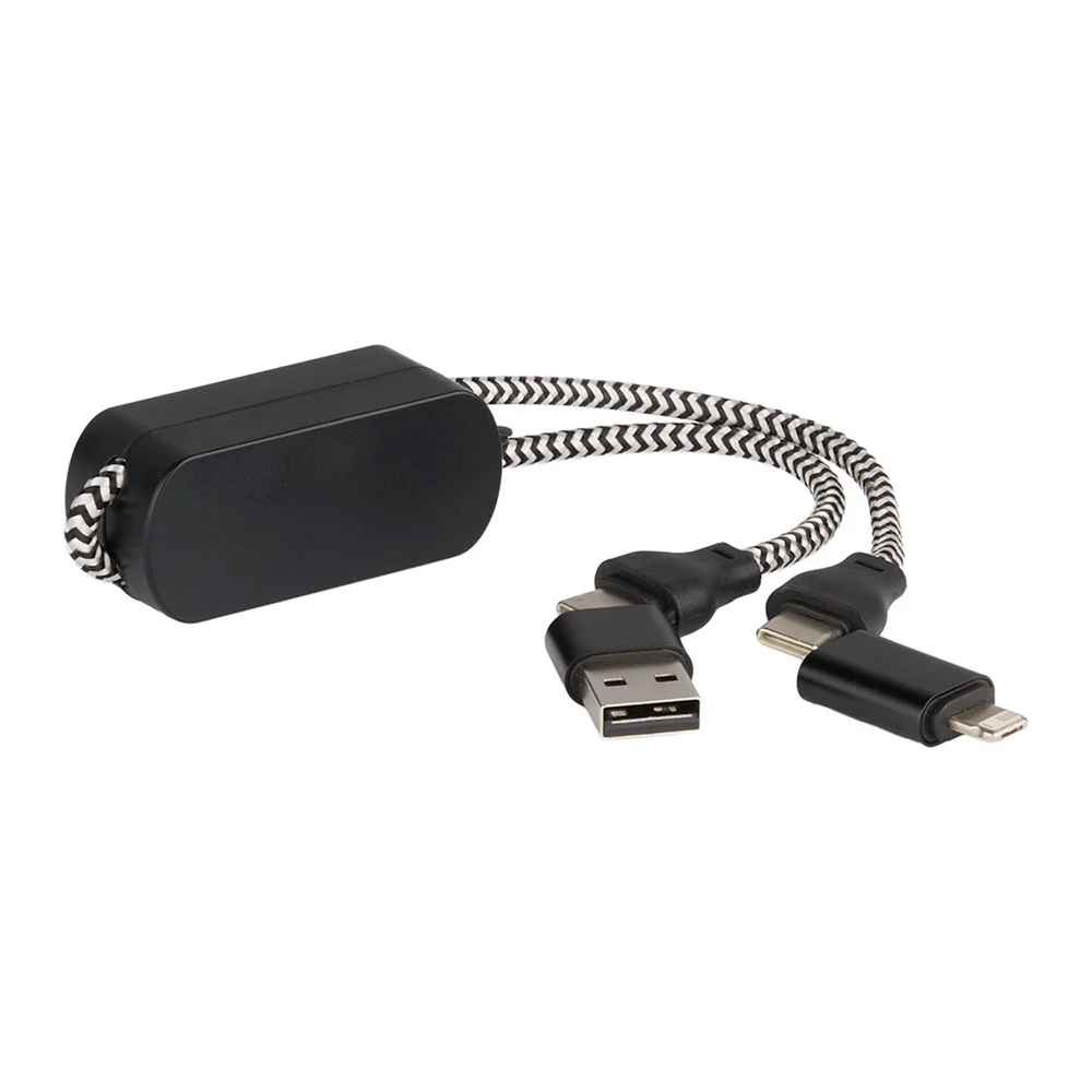 • Triple output: 2-in-1 iOS/Micro tip and one Type-C tip