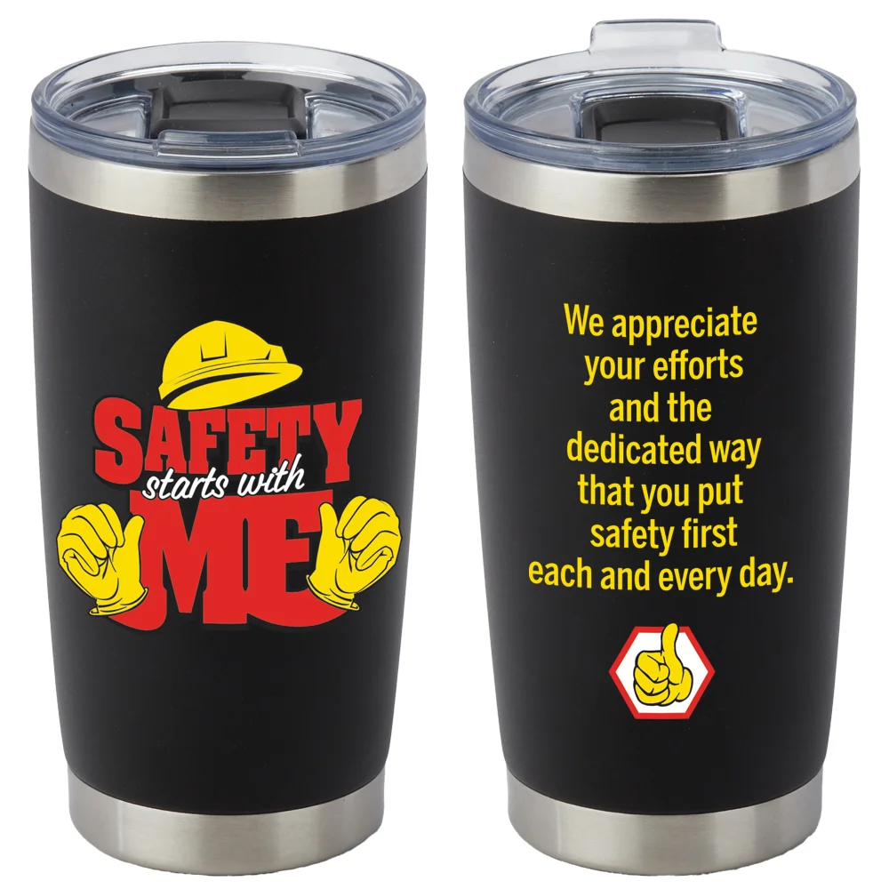 Templock Stainless-Steel Vacuum-Insulated Tumbler 20 oz.: Double-walled 18/8 stainless steel; Vacuum insulated; Cold for 12 hours, hot for 8; Powder-coated finish; Spill/splash-resistant, slide-lock lid; Straw slot (straw not included); Tapered base; Eco friendly; Reusable; BPA free; Note: Hand wash only