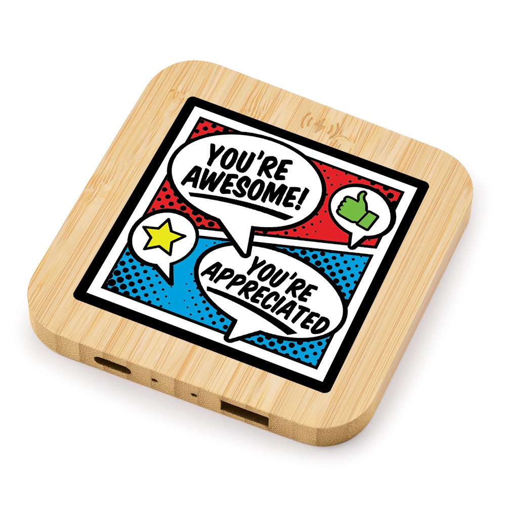 You're Awesome / You're Appreciated Bamboo 10W Wireless Charging Pad With Dual Ports