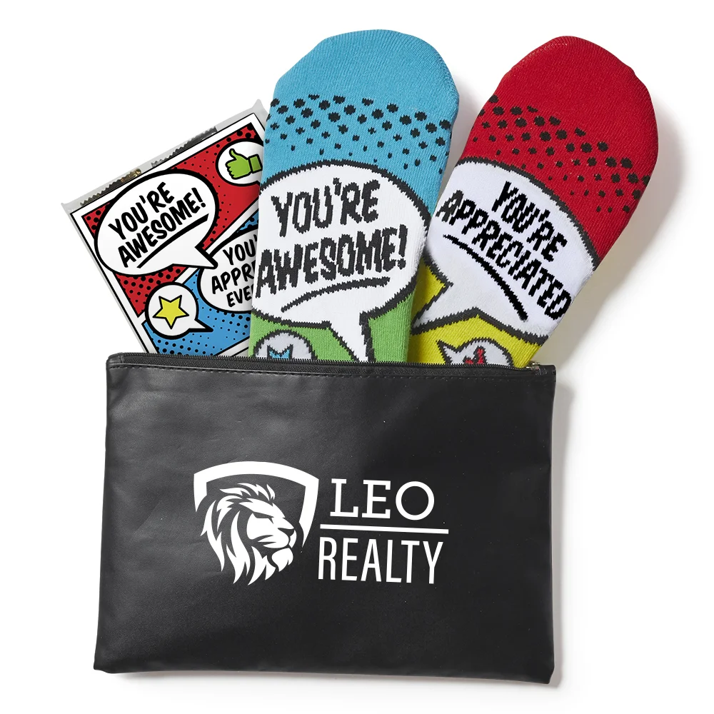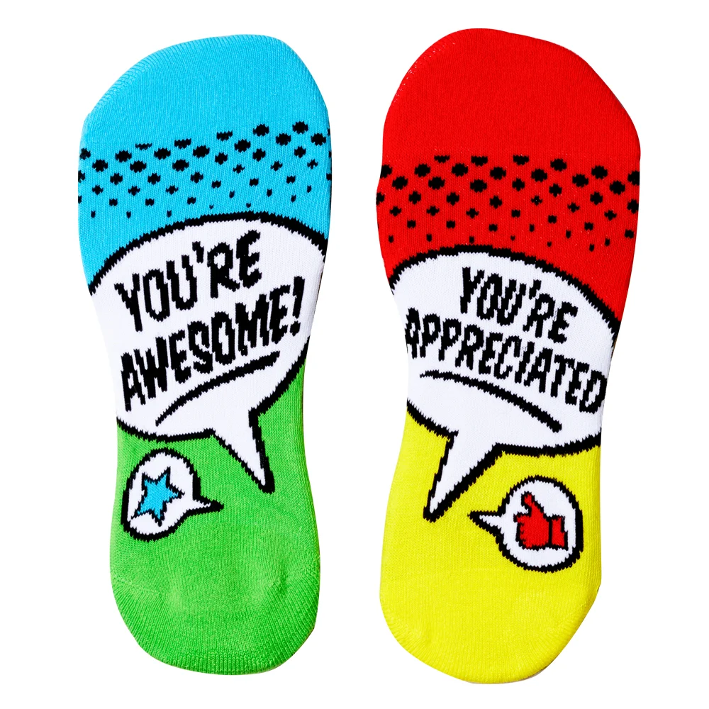 Ankle Socks: Cotton blend; Thick, cushioned soles offer comfort and relief after a long day; Color-accented heel & toe; Design on soles can be read when recipients put up their feet to relax; Each pair comes polybagged with a FREE appreciation card; One size fits most