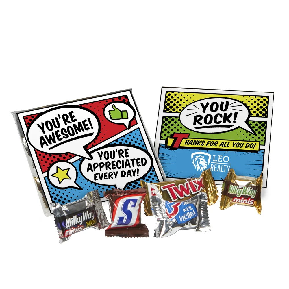 Treat Pack With Personalized Card: Individually polybagged pack of popular Mars® Mini chocolate candies; Appreciation card included