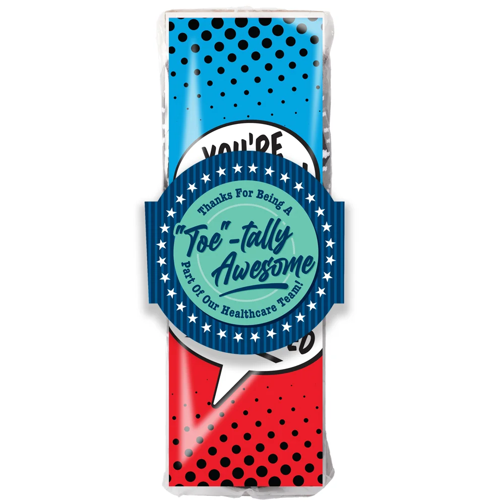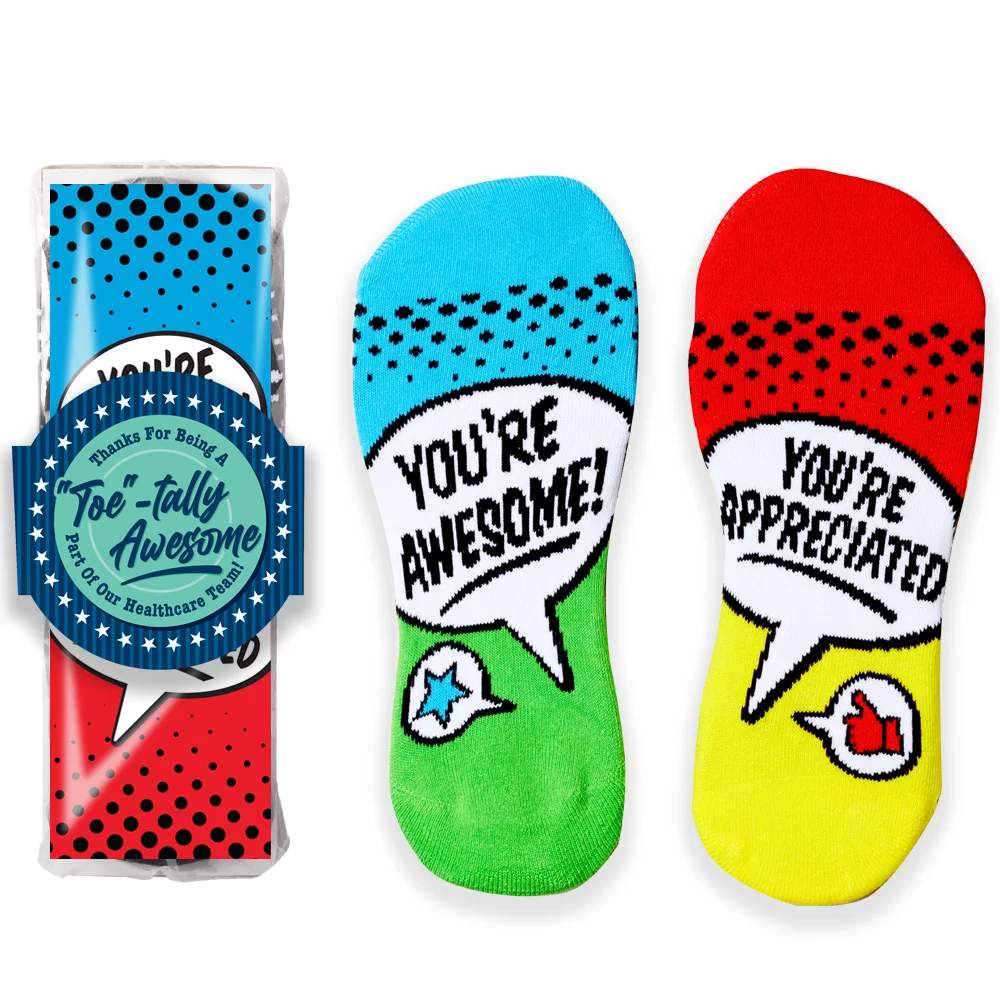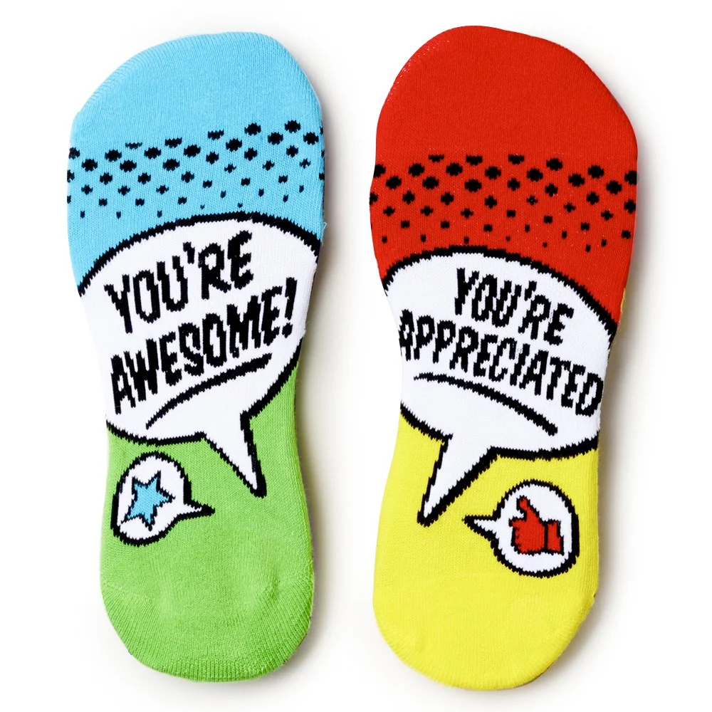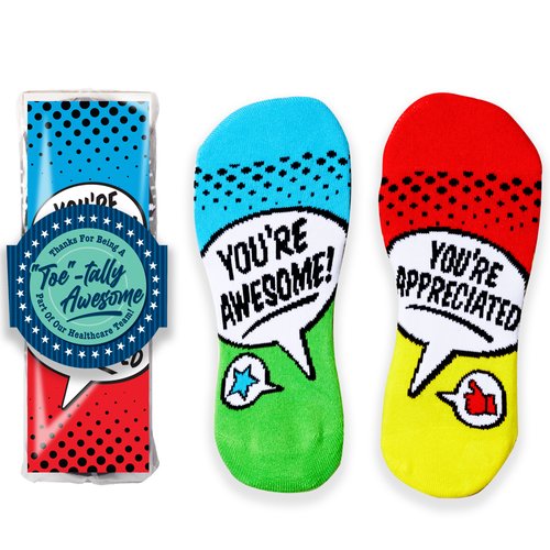 • Socks feature our exclusive You're Awesome! You're Appreciated design that can be read when recipients put up their feet to relax